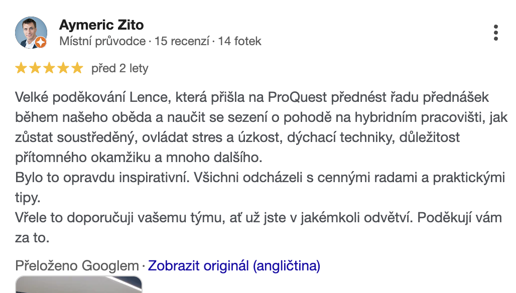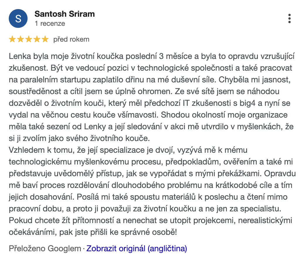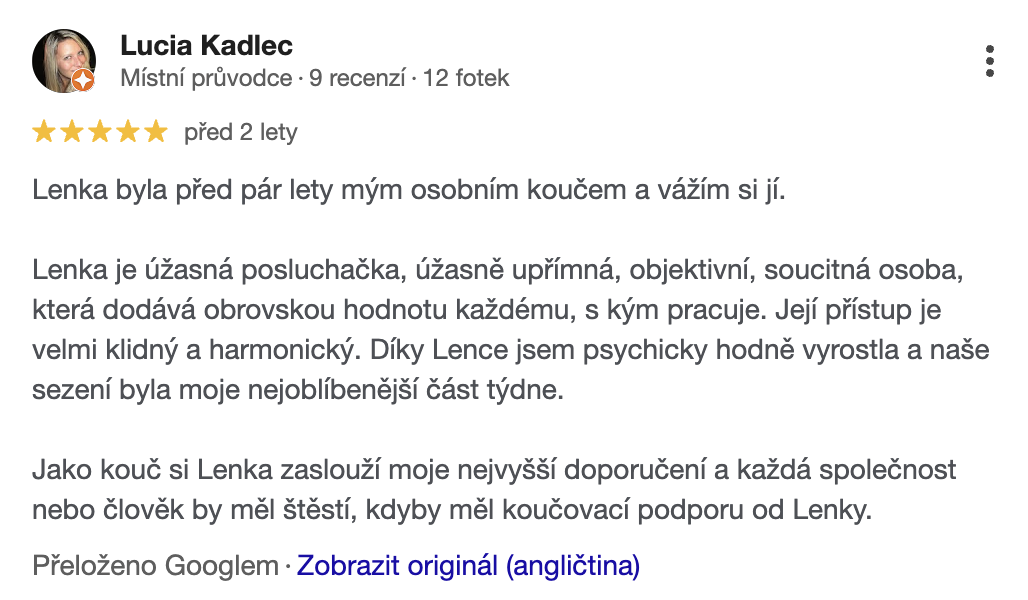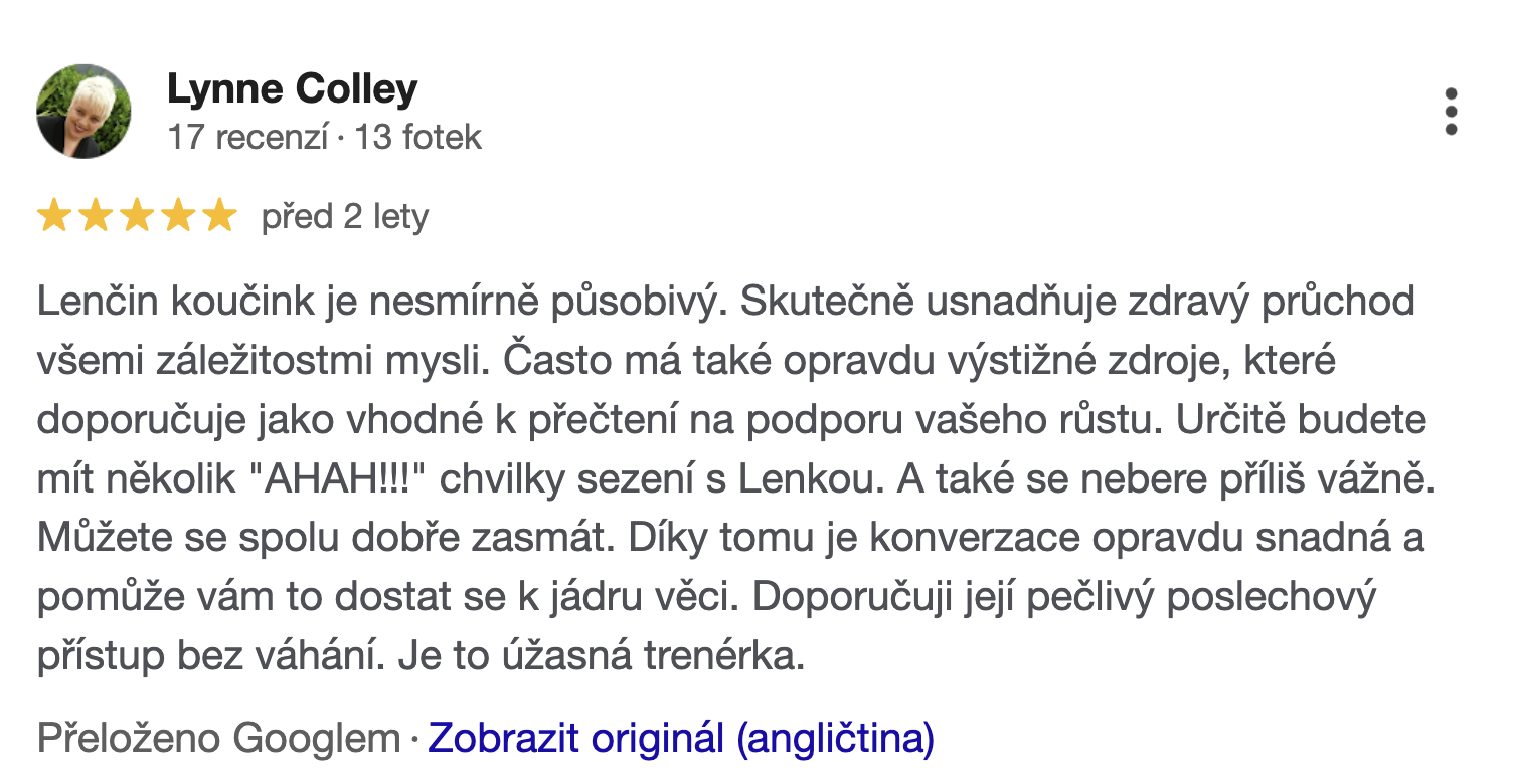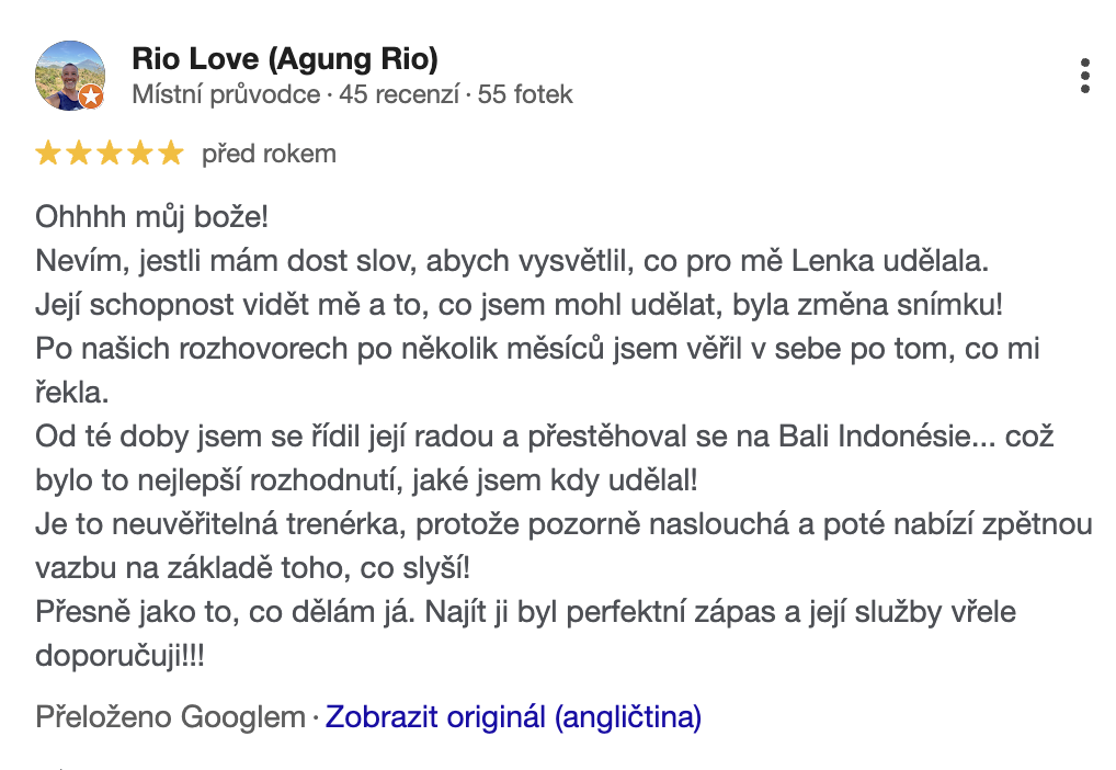 Jsem česko-australská terapeutka, koučka a autorka. Propojuji hlubokou práci s tělem (Compassionate Inquiry®, NLP) s podnikatelským mentoringem a životními zkušenostmi.
